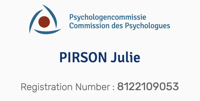 Je suis inscrite à la Commission des Psychologues de Belgique (numéro d'inscription : 8122109053).